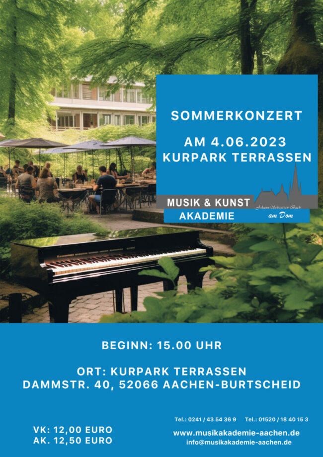 Seien Sie herzlich willkommen zu einem unvergesslichen Sommerkonzert auf den Kurparkterrassen in Aachen-Burtscheid, Musikgenuss auf Kurpark Terrassen in Aachen-Burtscheid mit der Musikschule Aachen am Dom